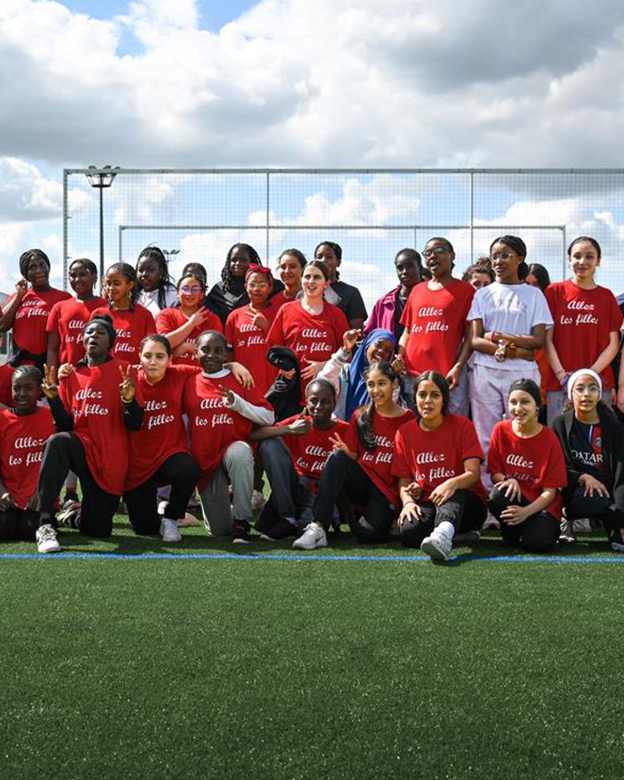 Nouvelle journée du programme « Allez les filles ! » organisée par le Paris Saint-Germain au campus PSG. Ce programme initie les jeunes filles de 11 à 16 ans issues des quartiers défavorisés à la pratique sportive.
